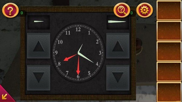 6、把右边桌上的钟盒时间调整为8:30,打开钟盒后拿到剪刀;