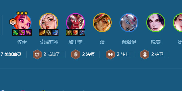 7剪纸仙灵、2武仙子、2法师、2斗士、2护卫。