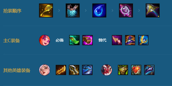 2、物理装给希维尔,法强装给佐伊,更具装备来确定天使的装备卢锡安,前排那护卫斗士提升阵容坦度