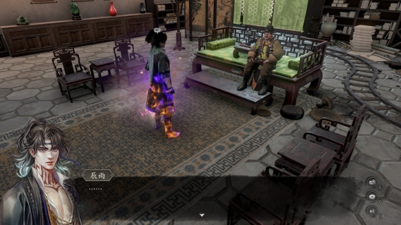前往江府,和老仆交流获得线索“喑哑老仆的画”。