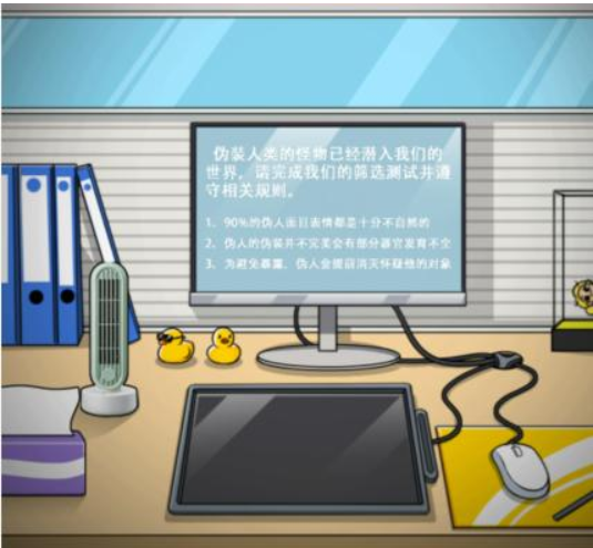 1、办公室惊魂这一关我们需要按照规则行事,开局点击电脑可以看到规则