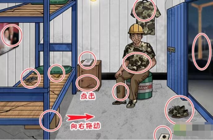 1、看你怎么秀工地上的爸爸,需要看看爸爸的近况,首先点击结婚照、墙上的衣服、碎屏手机、枕头下的书信、生活费、破洞鞋、狗皮膏药