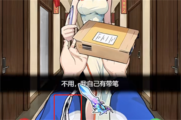 5、不要接她递过来的笔,上滑口袋拉链,拿出自己的笔。